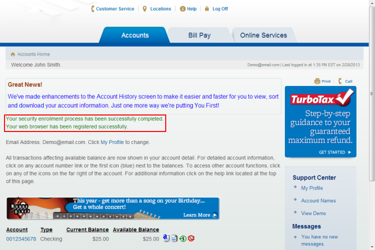You have successfully registered your browser! Please note, if you delete your cookie you will need to answer the three security question.